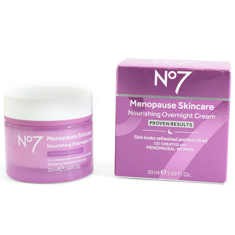 - Use No7 Menopause Skincare night cream for overnight hydration for dry, sensitive, menopausal skin