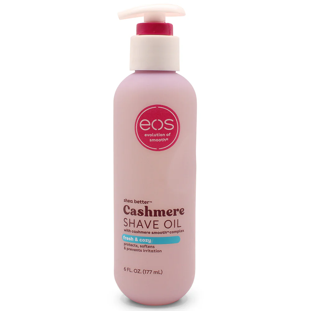 Eos 177mL Cashmere Shave Oil Fresh and Cozy features notes of morning light, dewy cassis, and sheer musk. The Cashmere Skin Complex leaves skin soft and smooth and contains shea butter, cocoa butter and argan butter. Eos shave oil provides soothing, long lasting moisture every time you shave. Enriched with skin protectants that prevent nicks and razor bumps, eos minimises irritation for a closer, gentler shave.