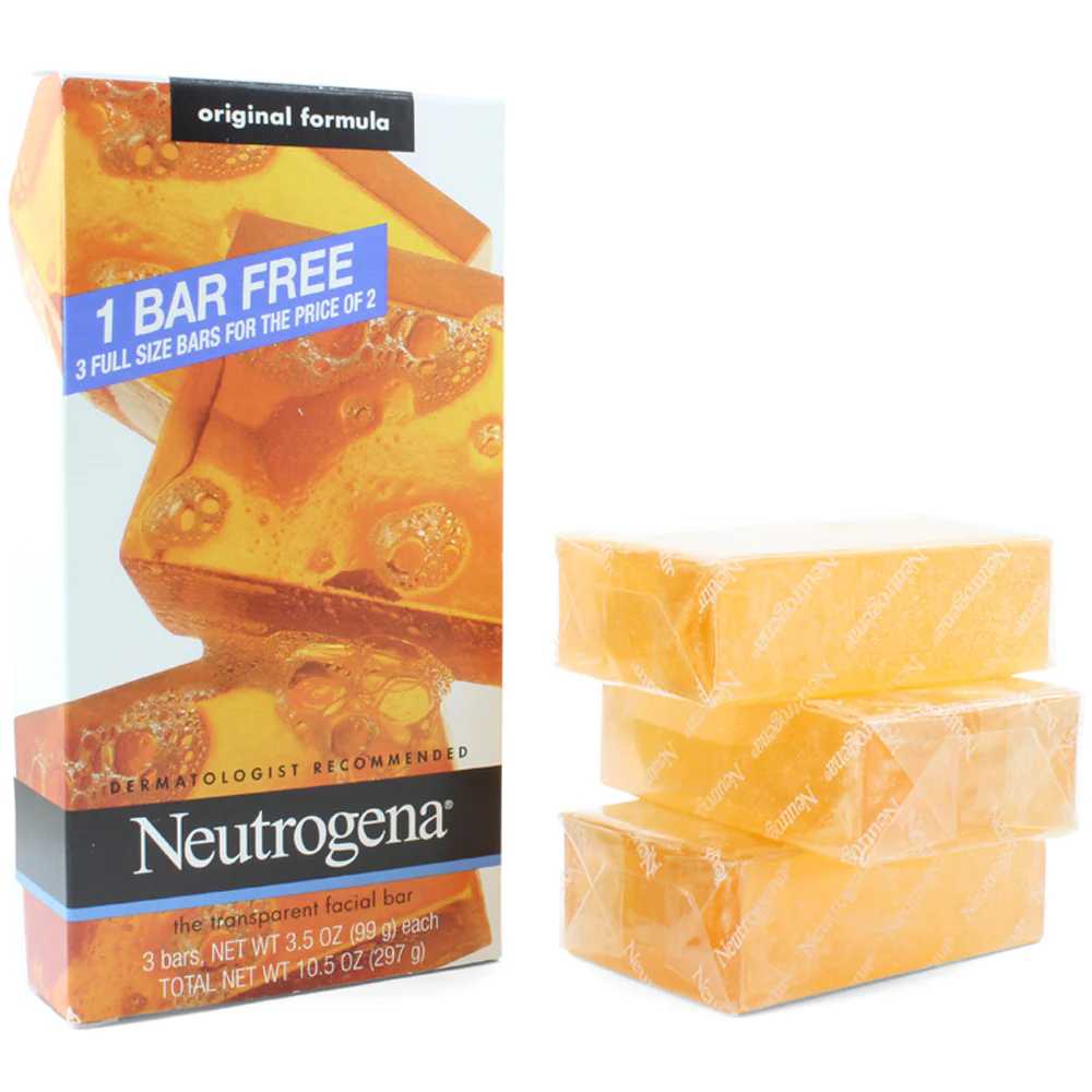 This Neutrogena 3-Pack original formula transparent facial Cleansing Bar is pure and gentle cleansing for clean, clear, healthy-looking skin.