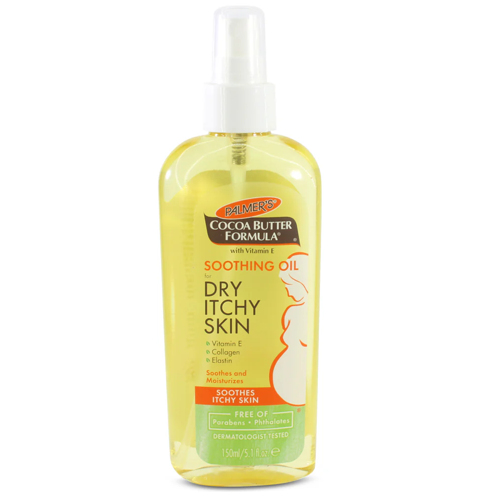 Palmers Soothing Oil is a lightweight and absorbent oil uniquely formulated to soothe, moisturise and soften sensitive, dry and itchy skin associated with pregnancy. This enriching complex features a softening combination of hydrating Cocoa Butter, anti-inflammatory Vitamin E, reconstructing Collagen and elastin to soothe the skin naturally while maintaining the firmness and suppleness. Meanwhile, the addition of Lecithin delivers further smoothing effects on the skin’s surface.