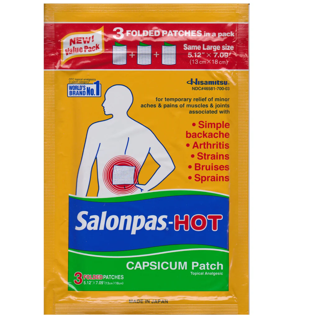 SALONPAS® HOT is a natural, odor free reliever, for long lasting ache relief up to 8 hours, used topically to help relieve minor aches and pains including muscle sprains and strains. SALONPAS® HOT has numerous holes arranged in a pattern of 16 vertical and 12 horizontal. This matrix of 192 holes is punched with extreme precision. SALONPAS® HOT “breathes” through each hole so that you can feel comfortable during use.